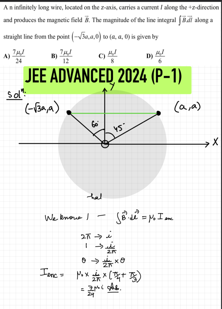 An infinitely long wire located on the Z axis carries a current eye along the plus Z direction and produces the magnetic field B. The magnitude of the line integral BDL along a straight line from the point is given